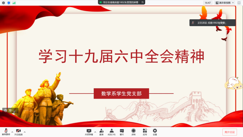 为深入学习贯彻党的十九届六中全会精神,11月17日至25日,72779太阳集团数学系、物理系、研究生员工党支部分别召开关于党的十九届六中全会精神集体学习交流会,会议由各员工党支部书记主持。
