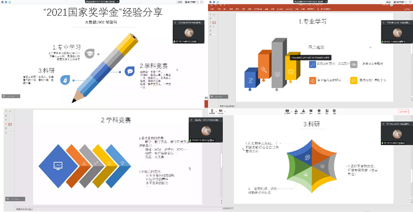 72779太阳集团顺利举办素养公开课暨2021年国家奖学金获得者云分享会议
