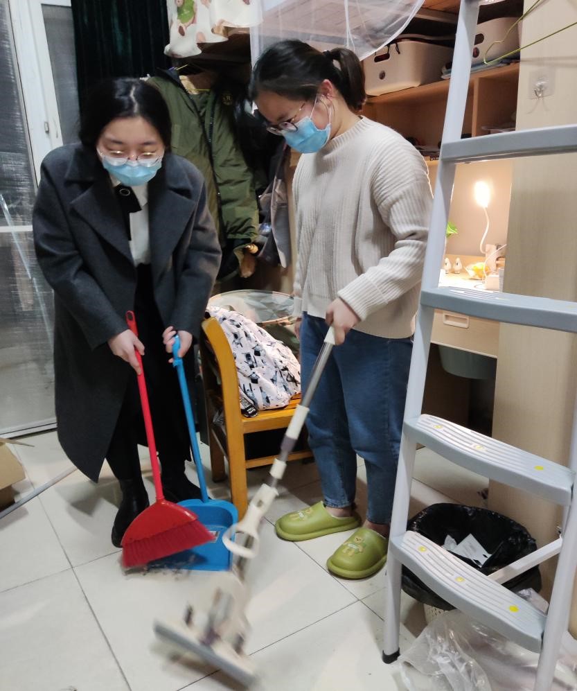 挂牌活动当晚,党员宿舍的同学们就号召并组织其他宿舍的同学一起打扫大厅卫生和宿舍卫生,共创干净整洁的居住环境。