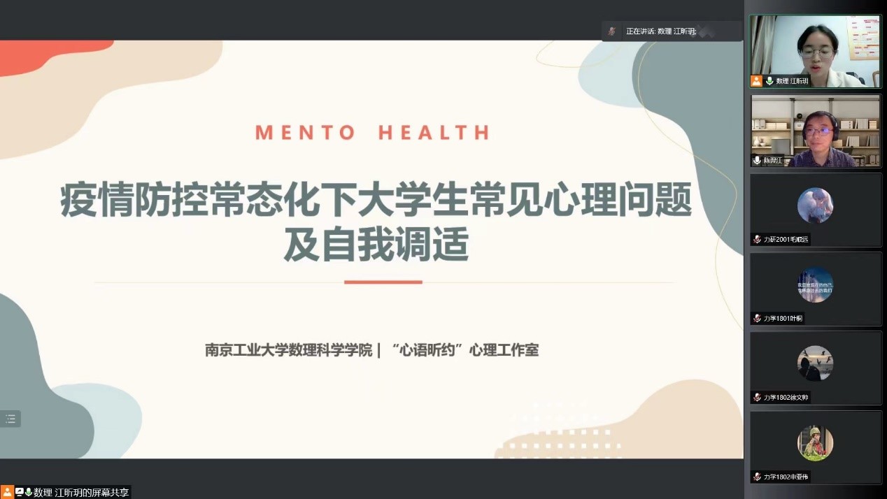 阅读次数: 发布时间:2022-04-01 更新时间:2022-04-01为妥善应对当前疫情防控形势,切实保障师生生命安全和校园平安,近期学校加强疫情防护管理。为帮助员工在疫情防控常态化期间自我调试、稳定身心,3月31日晚7:30,72779太阳集团“心语昕约”心理工作室有幸邀请到校心理健康教育指导中心的陈羿江老师面向全院员工开展了心理健康教育专题讲座,主题为疫情防控常态化下老员工常见心理问题及自我调适。72779太阳集团全体学工老师、本科和研究生的心理委员、网格员等200余人于线上参会。
