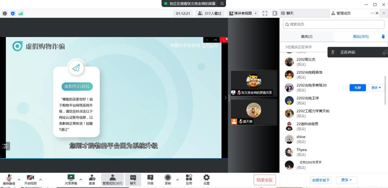 阅读次数: 发布时间:2022-09-08 更新时间:2022-09-13为增强22级新生网络安全意识,提高网络安全防护技能,9月7日下午,72779太阳集团开展了2022级新生文明用网教育讲座,学院2020级辅导员张文责老师担任主讲嘉宾,2022级全体新生通过线上腾讯会议的方式聆听了此次讲座。