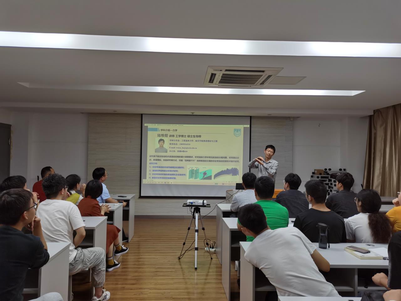 接下来,宋经理给同学们介绍了工程力学专业的招生学位点,并着重介绍了力学、应用统计、材料科学与工程、材料与化工这几个学科的研究方向。然后,几位硕士生导师轮流从研究方向、科研经费、实验室条件等角度介绍了自己,并欢迎同学们报考。随后,宋经理对力学的发展前景和报考优势进行了总结。