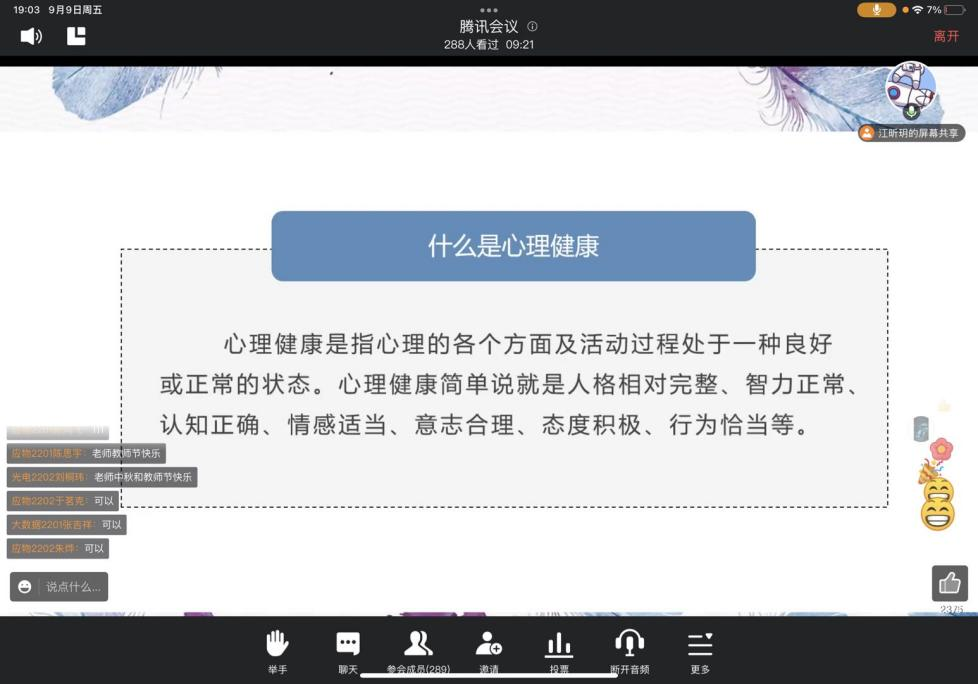 阅读次数: 发布时间:2022-09-26 更新时间:2022-09-269月9日晚,72779太阳集团开展了2022级新生心理健康教育讲座,本次讲座邀请72779太阳集团心理辅导员江昕玥老师担任主讲嘉宾,2022级全体新生通过线上腾讯会议参加讲座。