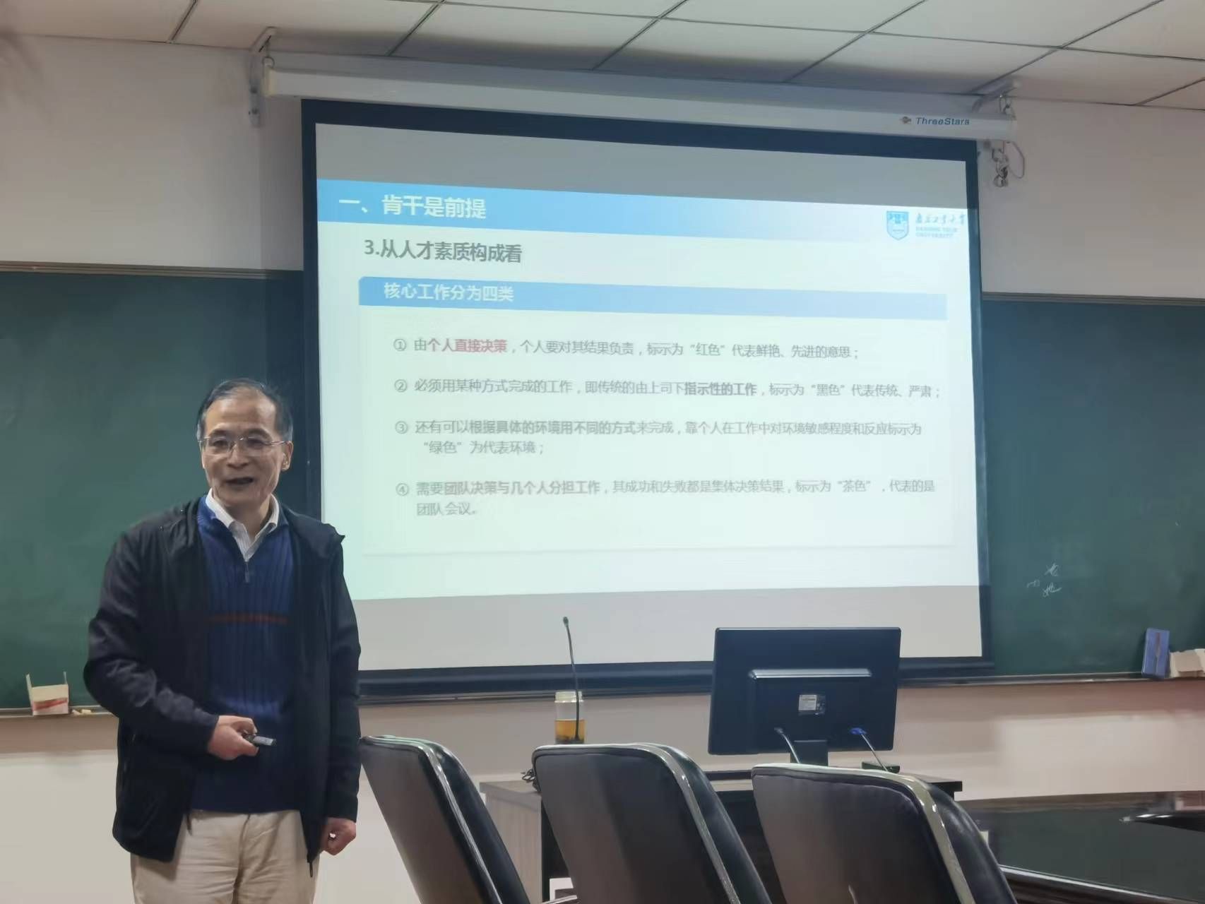 陈建华老师结合党的二十大报告内容和习近平总书记在党的二十大报告中对青年群体的寄语,围绕新时代员工管理工作等问题,从“肯干是前提”、“能干是基础”、“巧干是保证”三个方面,对“为什么做员工干部”,“员工干部的影响力主要是什么”,“会不会做员工干部”作出深入浅出的回答。鼓励同学们提高政治站位、提升思想觉悟,在今后的工作中严于律己,以身作则,充分发挥模范带头作用,热心集体,团结同学,为学院建设贡献自己的青春力量。陈老师讲座引经据典,内容新颖,参训员工干部不时报以热烈掌声。