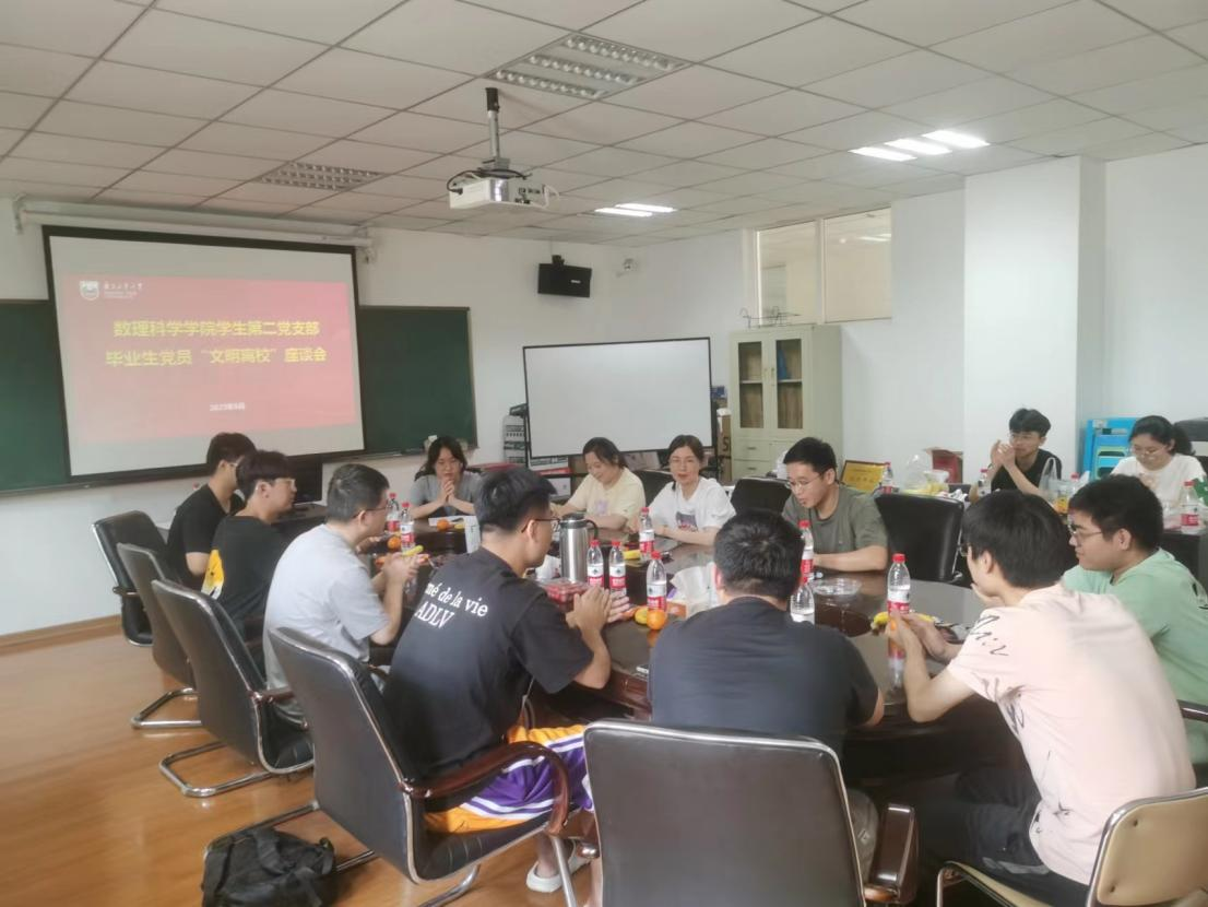 会议伊始,各位支部书记对全体毕业生党员即将圆满完成学业表示祝贺,并对大家在校期间的良好表现给予了充分肯定。号召全体毕业生党员要牢记新时代青年应该承担的时代责任和使命,牢记入党誓言,牢记初心和使命,加强自身政治学习,不断提高自己的政治修养,不断增强为人民服务的本领和能力。紧接着,毕业生党员做交流发言,向学弟学妹们分享考研、考公、工作的宝贵经验并表达了他们对母校培养的殷殷感激之情和对学校美好明天的祝愿。随后,低年级党员代表学弟学妹表达出美好祝愿,并表示会拿好接力棒,跑出新篇章。最后,毕业生辅导员希望同学们既能仰望星空、又能脚踏实地,理智地、全方位地思考和行动,在尽力实现自己梦想的同时,展现新时代青年的责任和担当,母校永远为大家敞开怀抱,常回母校看看。