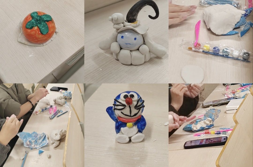 活动向参与同学展示基本的泥塑工艺和技术,指导参与者揉捏、塑造和装饰泥塑作品。同学们自由使用适当的工具,自行构思泥塑造型,用双手创造出属于自己的作品。