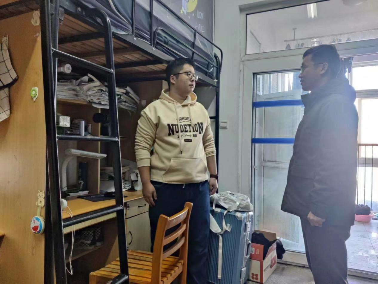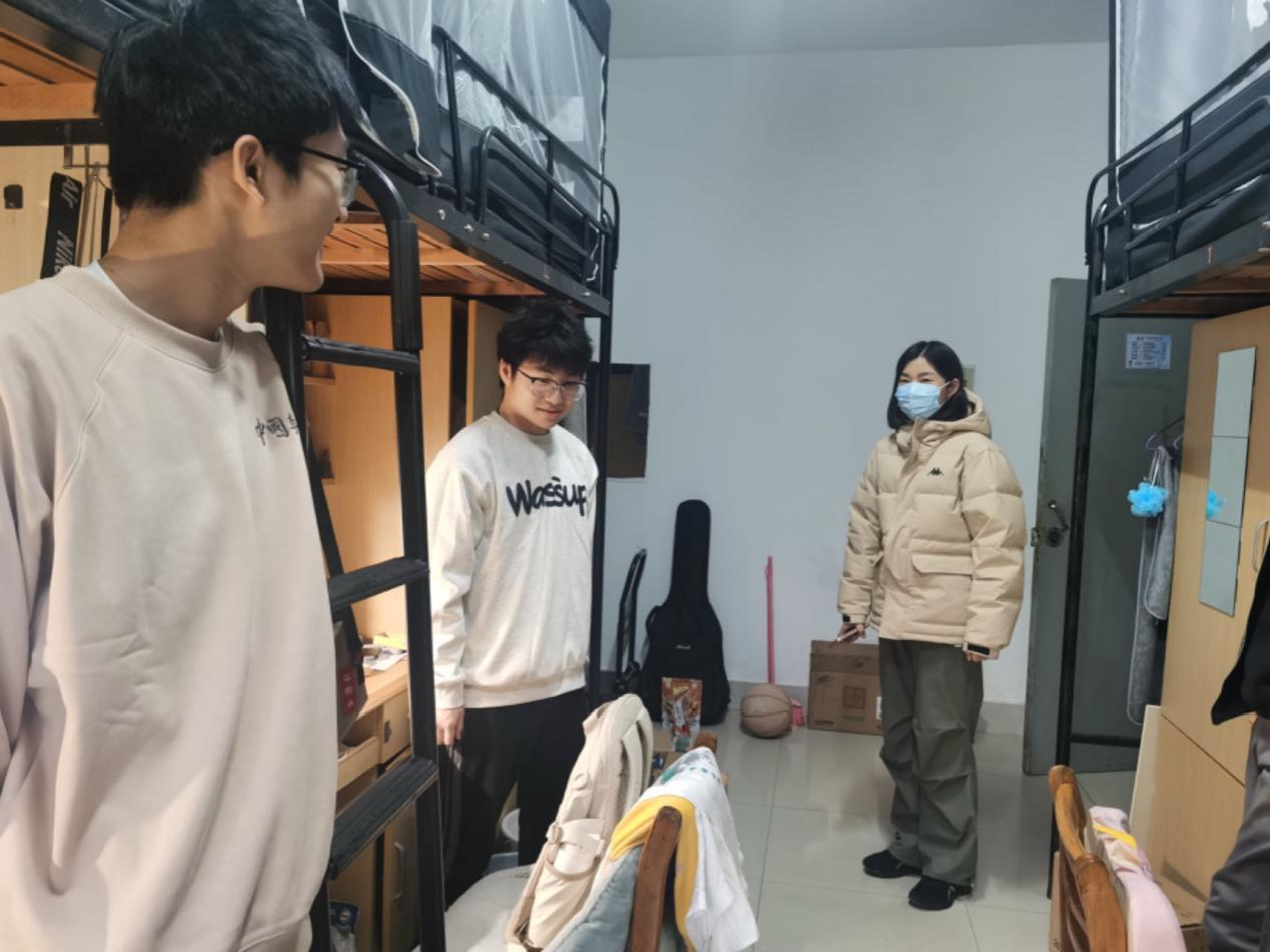 为提高广大师生的安全意识和自我保护能力,72779太阳集团积极开展安全教育活动,共筑和谐校园。2023年11月,蔡亚峰副书记和各年级辅导员深入走访员工宿舍和研究生工作室,与同学们亲切交流,并对员工宿舍和研究生工作室的安全卫生情况进行检查。通过安全事故案例、工作室基本知识、工作室安全风险因素等层面详细讲解了工作室安全相关知识,呼吁同学们认真学习安全规程,严格遵守相关规定,安全无小事,防范在心中,让安全落实在各个细节之处。