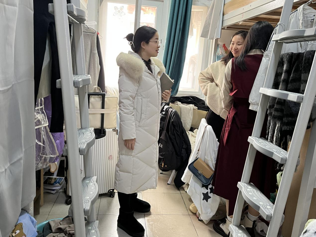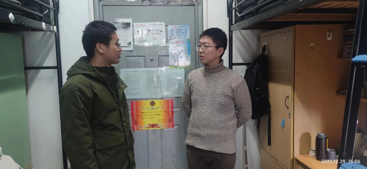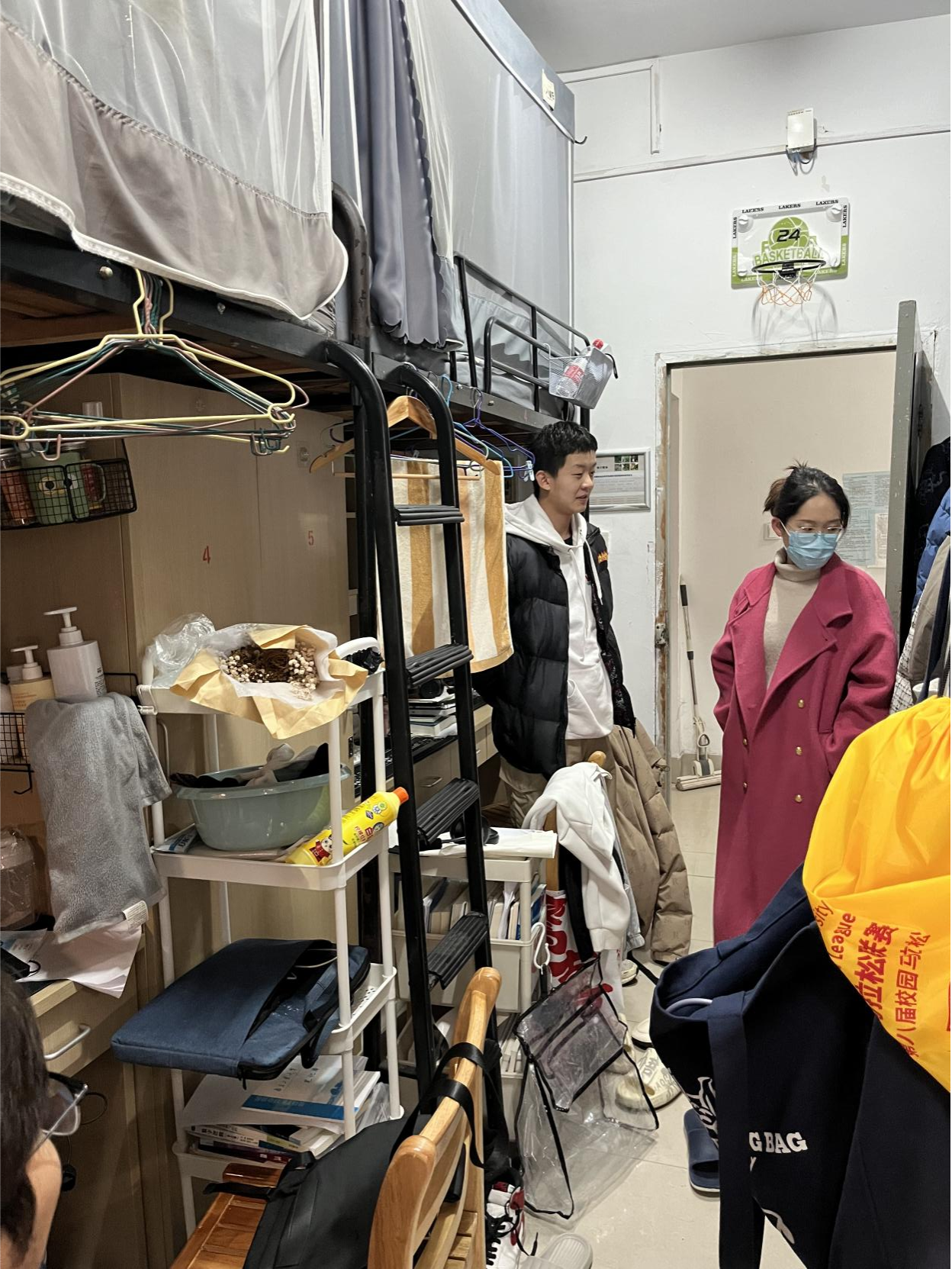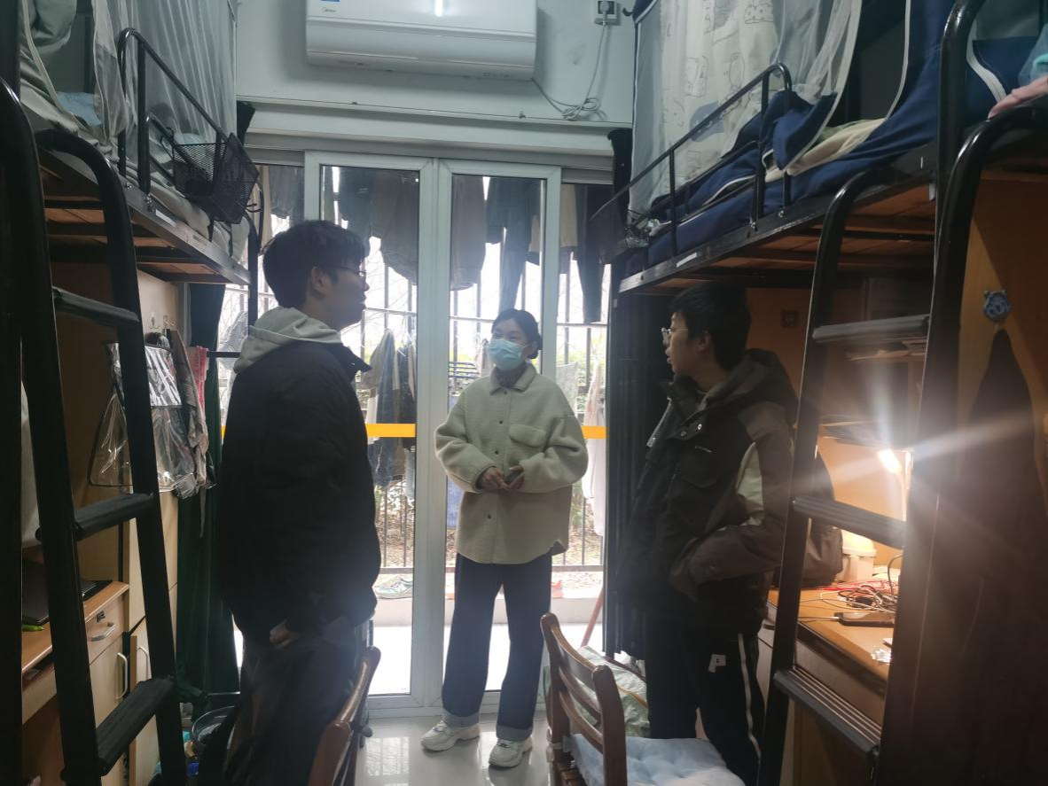 阅读次数: 发布时间:2023-12-29 更新时间:2023-12-29在元旦假期来临之际,为进一步加强员工宿舍和研究生的工作室卫生及安全意识,12月28-29日,公司党委副书记蔡亚峰、学办各年级辅导员深入走访员工宿舍和研究生工作室,了解员工在校生活情况,排查宿舍卫生安全隐患。