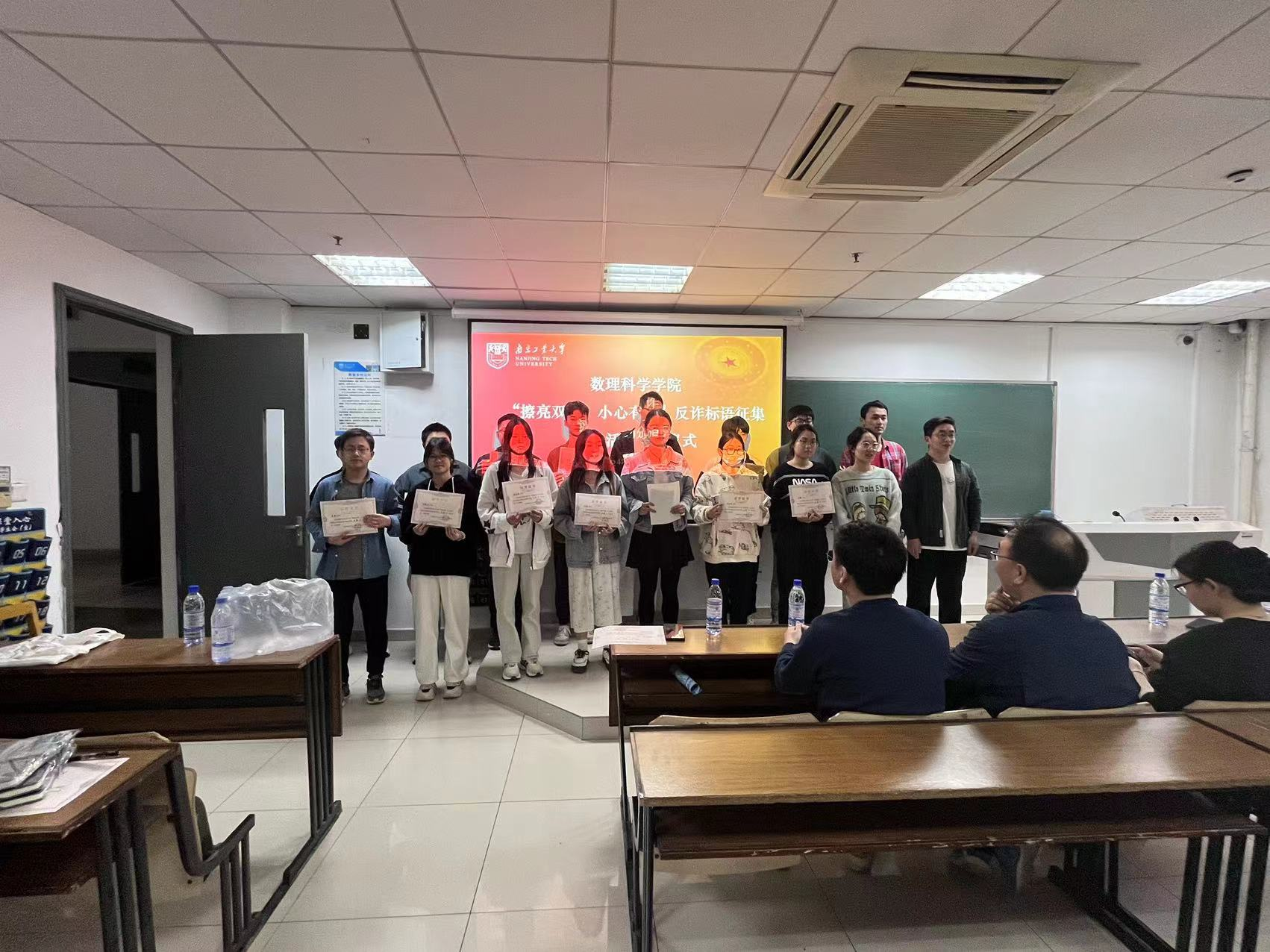 会上,江昕玥老师首先向大家详细介绍了学院本次“反电诈宣传月”主题活动的开展情况并进行总结。接着,公司党委副书记蔡亚峰和学办全体辅导员老师为获奖同学颁发获奖证书及奖品并合影留念。