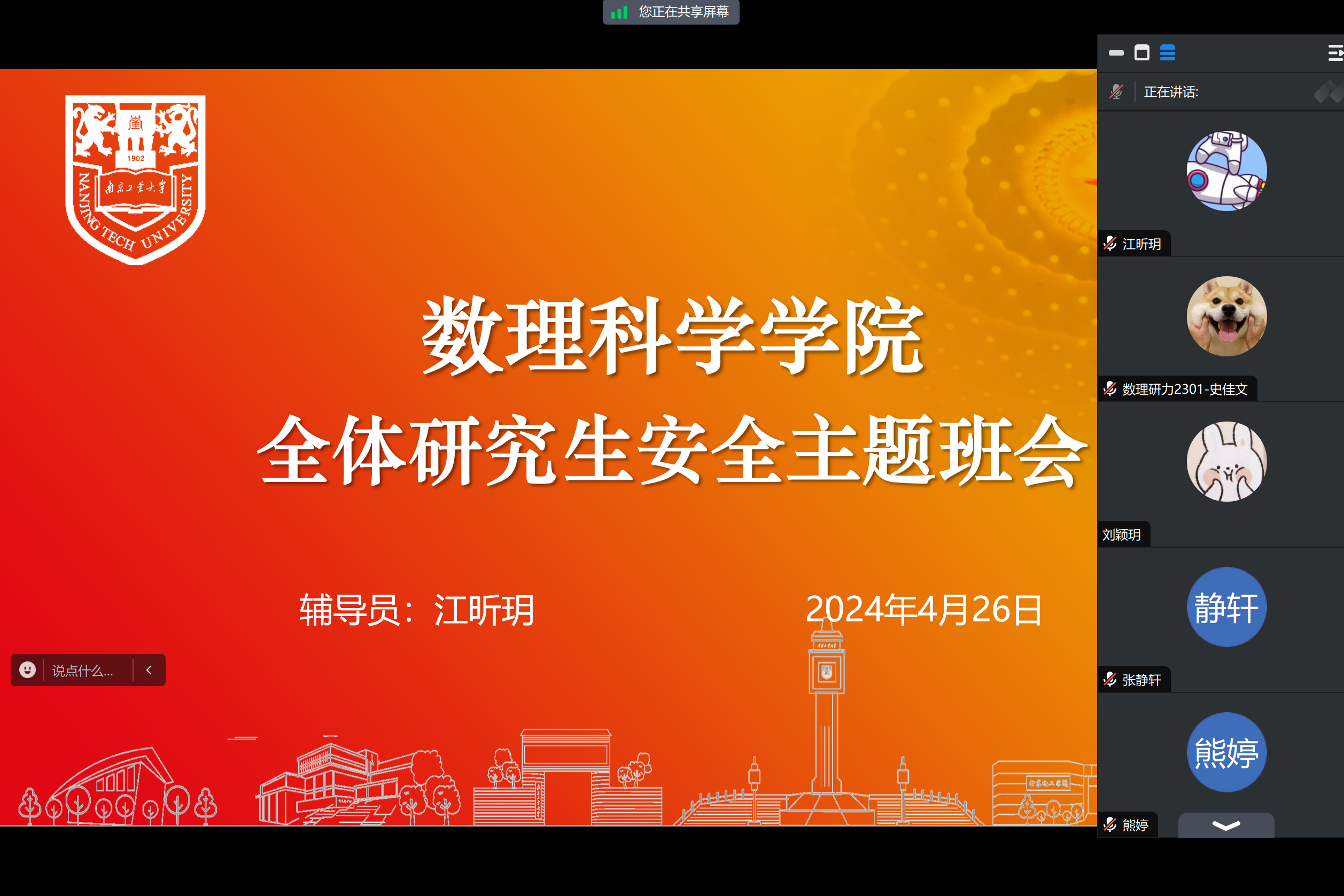 阅读次数: 发布时间:2024-04-30 更新时间:2024-04-30五一假期来临之际,为加强学院员工的假期安全意识,确保同学们度过安全愉快的假期生活,筑牢“平安数理”的安全防线,4月26日—4月30日,72779太阳集团开展了“五一假期”安全教育主题班会及宿舍和研究生工作室卫生、安全大检查活动,引导同学们做维护学校安全和假期安全的参与者和践行者。