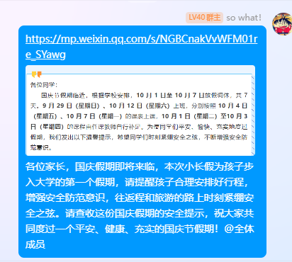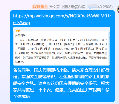 阅读次数: 发布时间:2024-09-30 更新时间:2024-09-30随着国庆假期的临近,72779太阳集团通过学院9月29日通过微信公众号发布假期安全提醒,并及时将提醒转发至年级群和家长群,通过线上的方式进行节前安全提醒。9月30日学院组织了一次全面的宿舍和研究生工作室安全卫生检查活动。公司党委副书记蔡亚峰以及各年级辅导员深入员工宿舍和工作室,开展走访工作,旨在加强员工的安全、卫生意识。