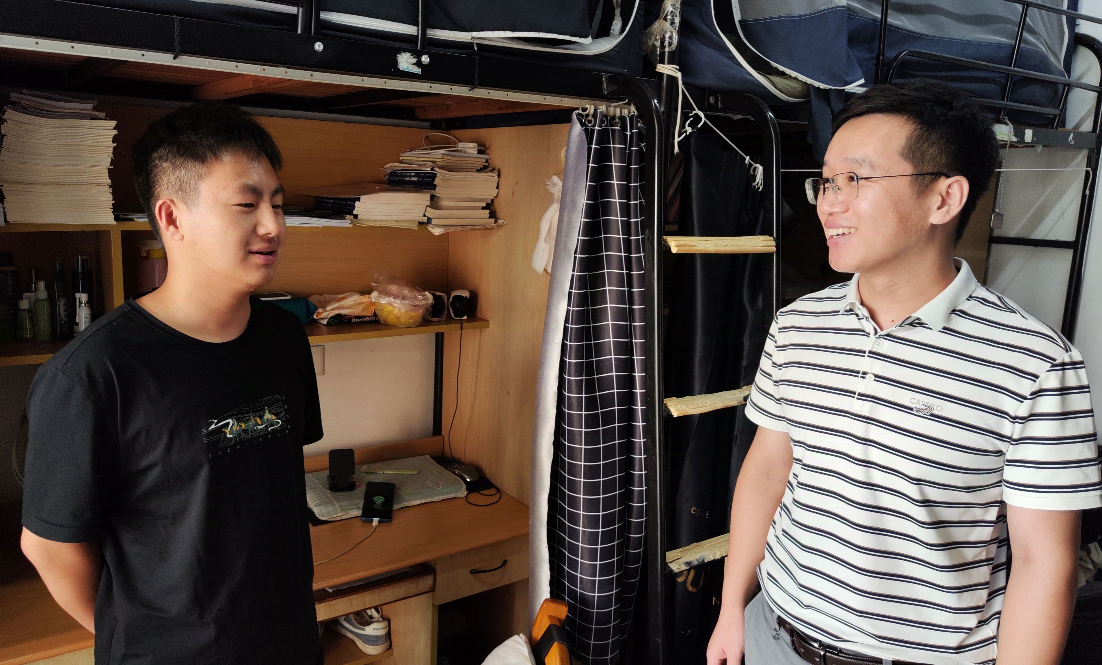 在走访过程中,蔡亚峰副书记和辅导员们与同学们进行了亲切的交流,详细询问了他们在课程学习、宿舍生活、科研进度和求职就业等方面的情况,并给予了指导和建议。蔡亚峰副书记反复叮嘱同学们要提高安全意识,紧绷安全之弦,离开工作室时要断电,避免充电器、充电宝长时间充电带来的安全隐患。辅导员提醒同学们,在假期期间请注意人身和财产安全,遵守交通规则,防火防盗,不参与非法活动,度过一个平安、健康、充实的国庆节假期