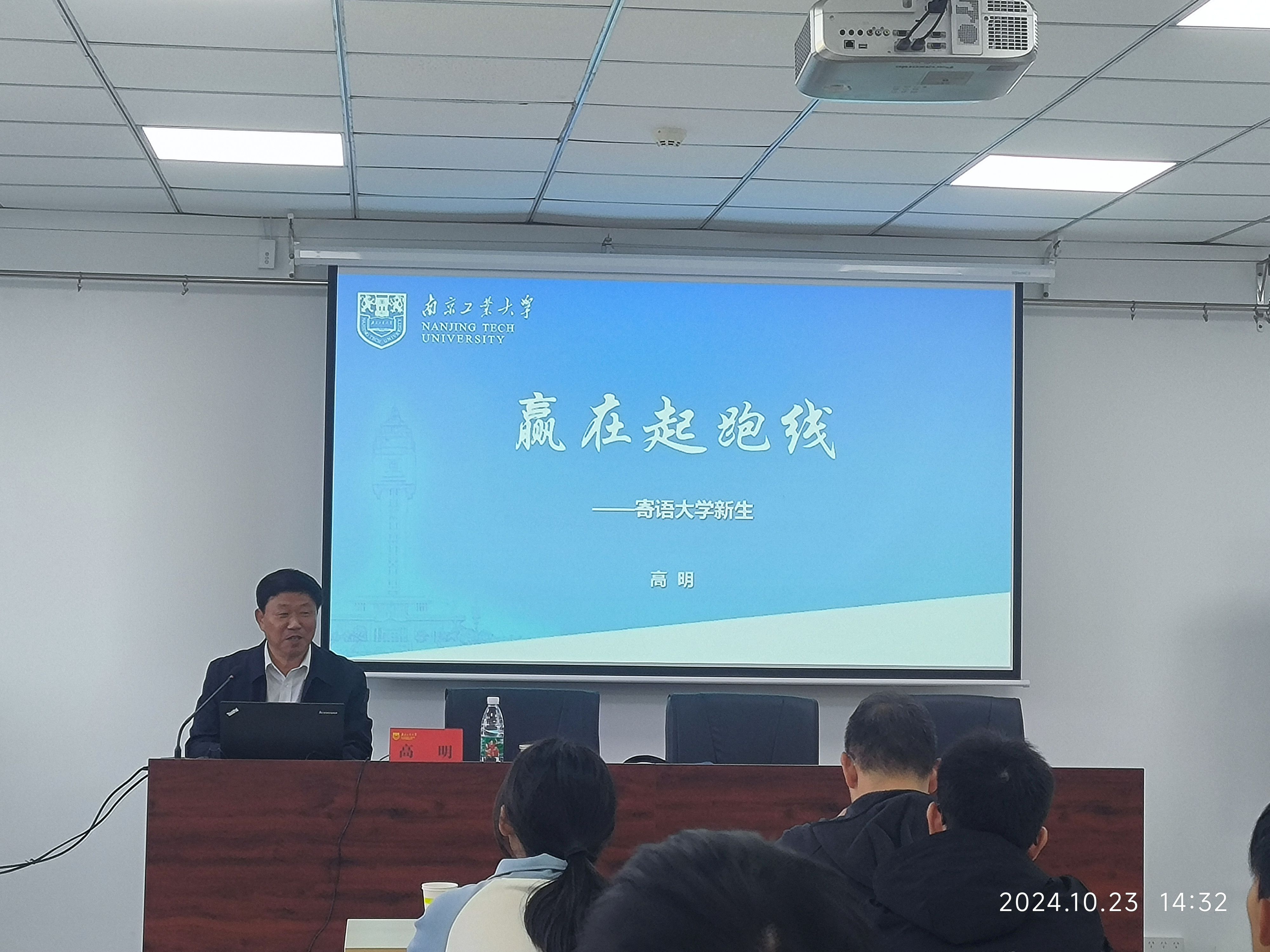 阅读次数: 发布时间:2024-10-24 更新时间:2024-12-05新生入学教育作为“大思政课”建设的重要环节,旨在帮助新生坚定理想信念。为引导2024级本科新生和研究生新生更好地适应老员工活,提升综合素养,10月23日下午公司成功举办了“赢在起跑线”报告会暨2024新生骨干培训会。本次报告会邀请到了校关工委常务副主任,太阳集团原党委副书记、副董事长高明教授,公司党委书记王超、经理马树建、全体学办老师、2024级新生骨干代表参加,报告会由公司党委副书记蔡亚峰主持。