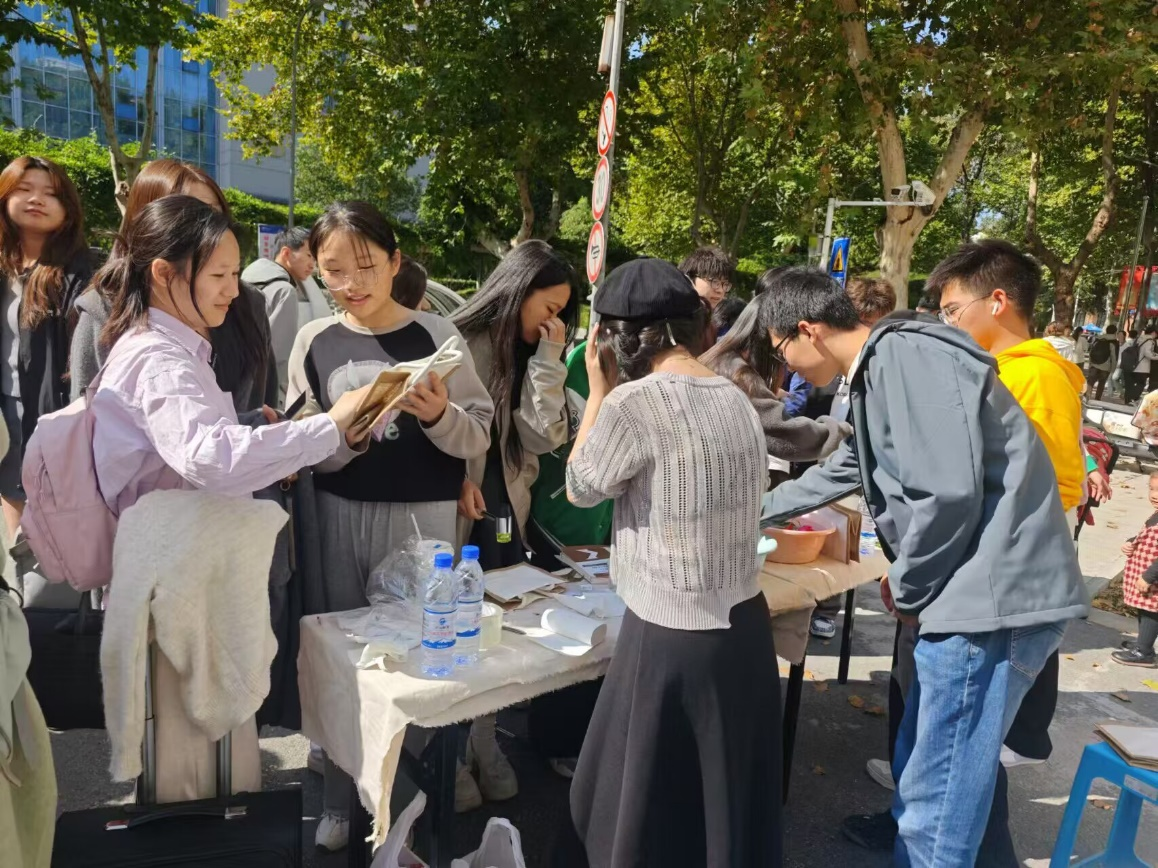 活动伊始,伴随着旭日的阳光,准备后勤工作的志愿者同学在摊位前准备着拓印活动所需要的工具,包括各种图案的底板、宣纸、墨汁。此外,摊位上还展示了精美的拓印作品,从古代诗词到现代图案,从名人字画到员工创作,内容丰富多样,令人目不暇接。同学们通过参与游戏和回答问题,不仅加深了对拓印艺术的了解,还赢得了精美的拓印作品作为奖励。通过此次活动,同学们不仅增强了活动的互动性和趣味性,还激发了同学们对传统文化的兴趣和热爱,对美育教育有了更深入的了解和认识。许多同学表示,这样的活动不仅丰富了他们的校园文化生活,还提升了他们的审美素养和创造力,对他们的个人成长和学术发展都非常有益。