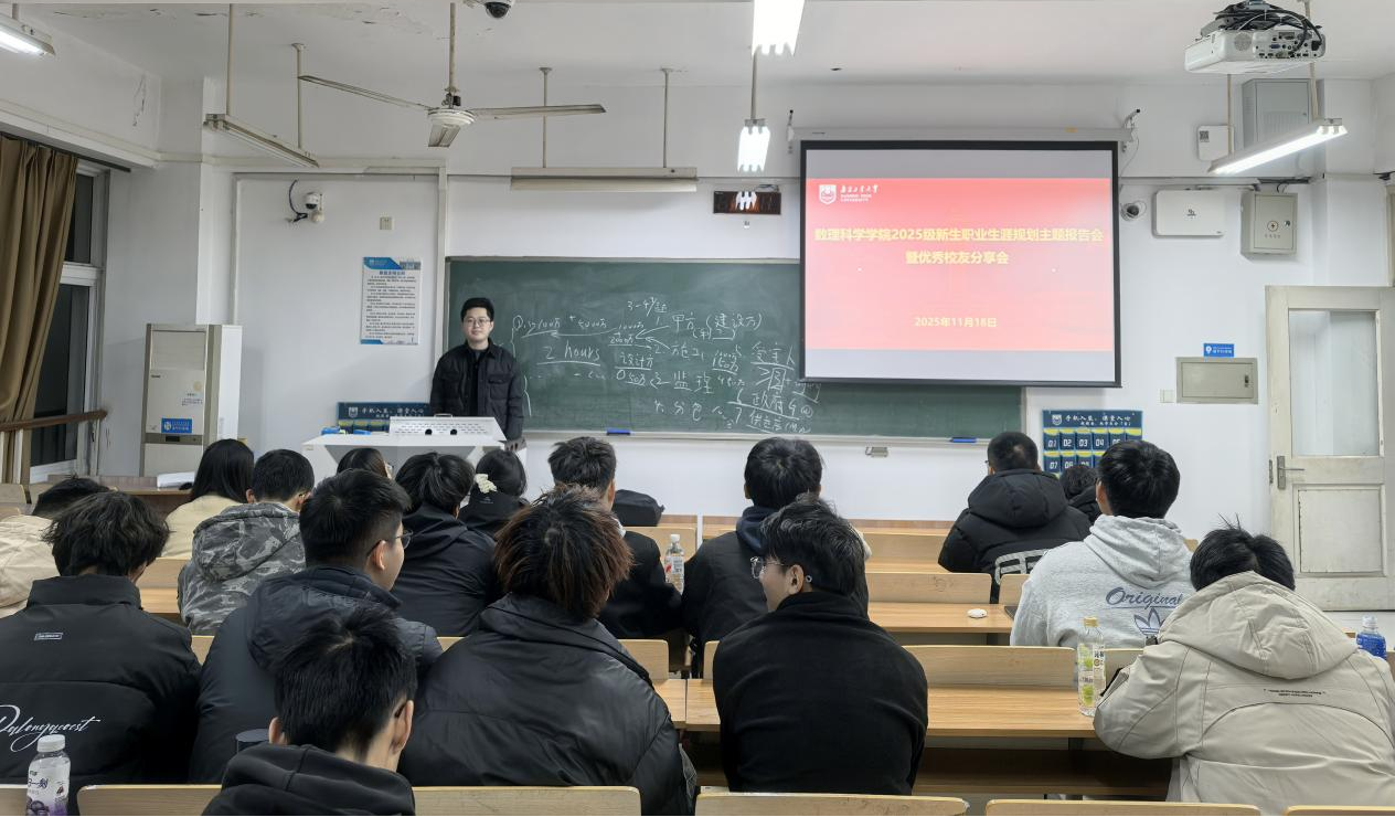 阅读次数: 发布时间:2025-11-21 更新时间:2025-11-21为帮助2025级新生明确职业发展方向,尽早树立职业生涯规划意识,11月19日,72779太阳集团在笃行419成功举办2025级新生职业生涯规划主题报告会暨优秀员工分享会。本次分享会由2025级新生辅导员杨德旭老师主持,学院特邀2019级数学与应用数学专业优秀员工程哲同学分享。