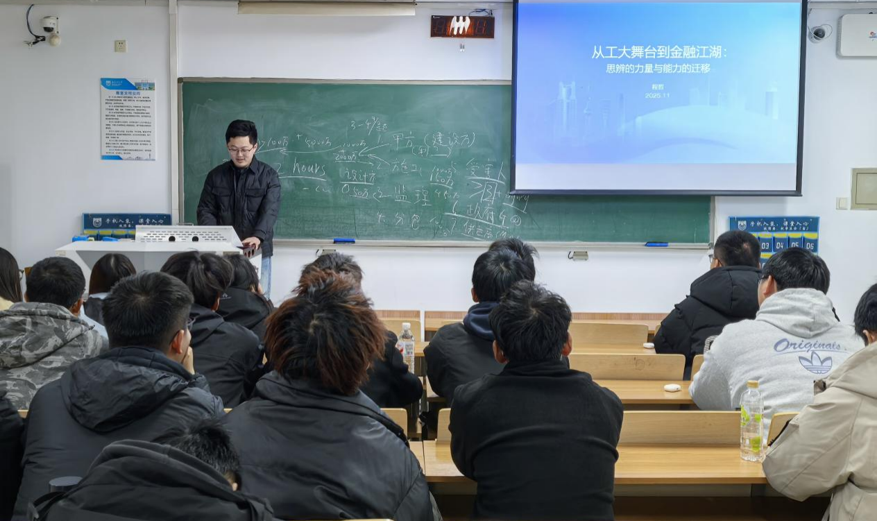 分享会上,程哲结合自身职业发展历程,以生动鲜活的案例和真挚恳切的话语,向同学们详细分享了毕业后的就业选择、职业成长与行业感悟。他从专业知识应用、实践能力培养、职场心态调整等多个维度,梳理了大学期间的能力提升路径,强调扎实的专业基础、较强的沟通能力和持续学习的意识是未来立足职场的核心竞争力。同时,他鼓励大家珍惜大学时光,积极参与学科竞赛、科研实践和社会实践,全方位积累自身素质,为未来职业发展奠定坚实基础。分享结束后同学们积极互动提问,现场交流氛围热烈融洽。