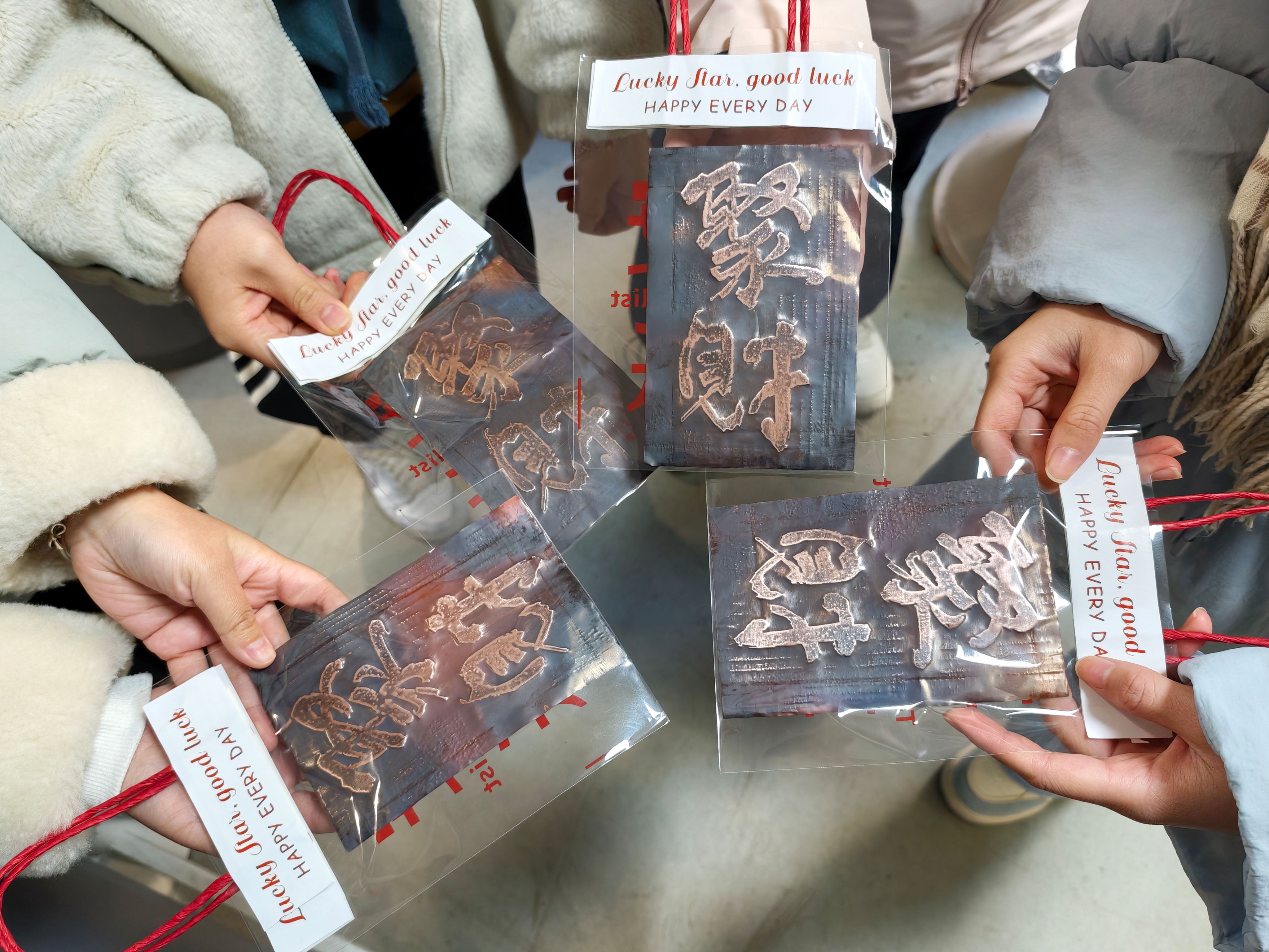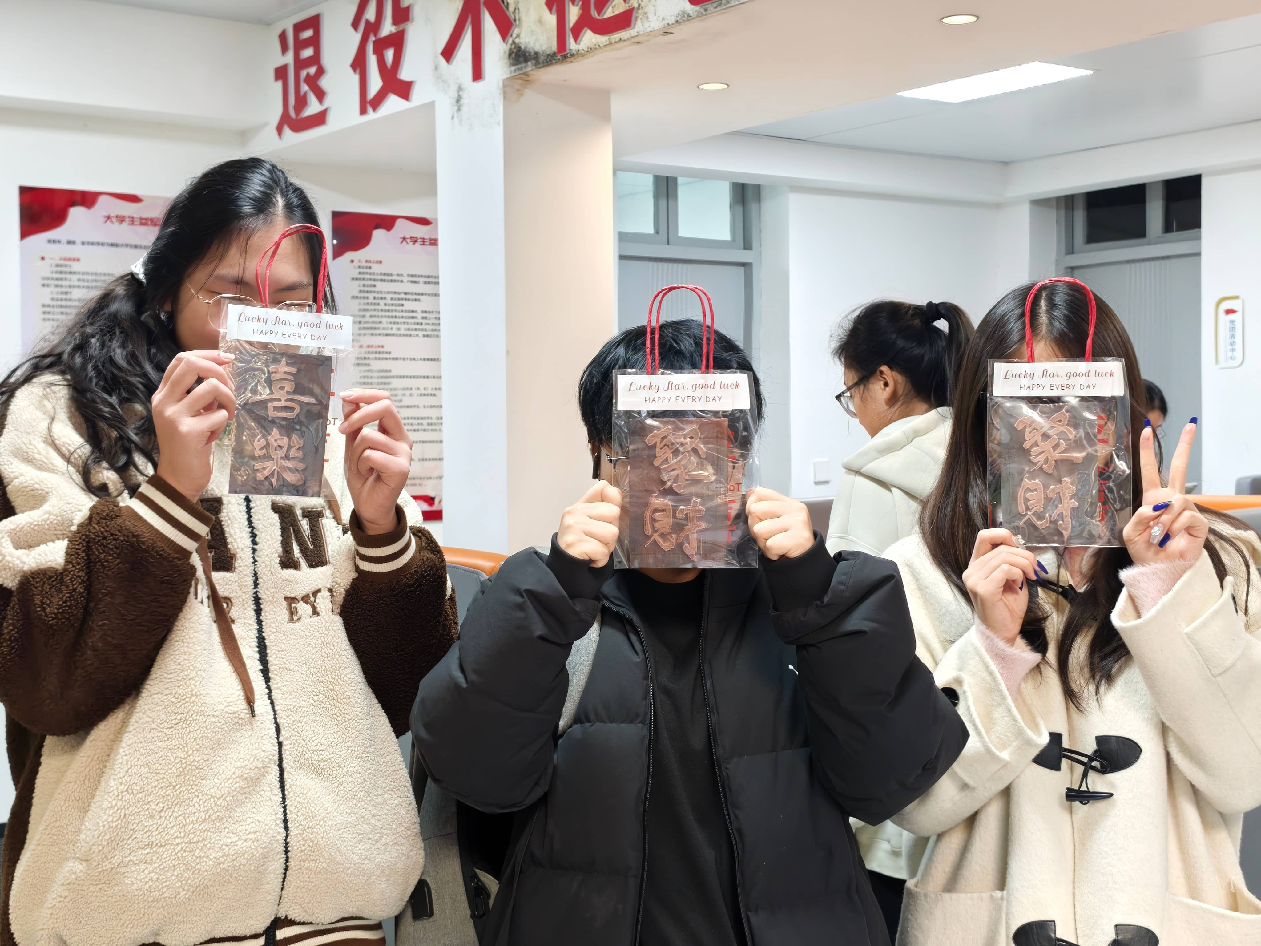 活动现场,同学们在指导下亲身体验了非遗拓印技艺的完整流程。从清洁模具到细心铺纸、精准拓印,每一步都需静心与耐心。当“聚财”、“喜乐”文字字样在青铜片上清晰显现,亲手创造的文化印记让同学们成就感满满。大家不仅学习了传统技艺,更在交流与实践中,深入理解了纹饰背后的吉祥寓意与历史内涵,现场洋溢着专注而愉悦的氛围。