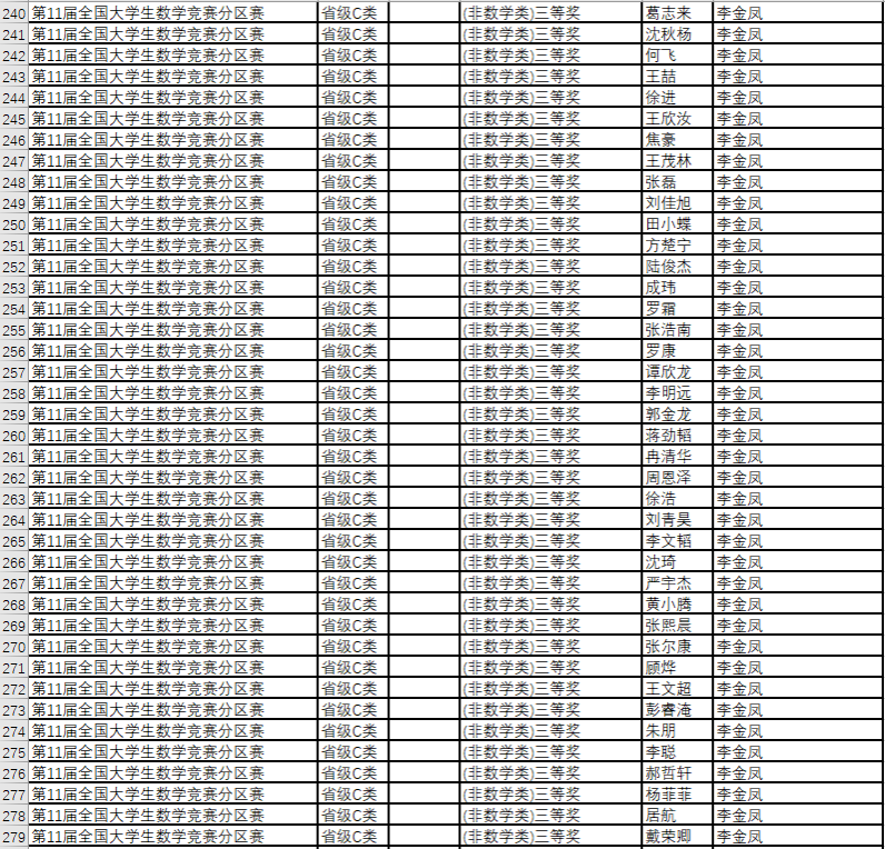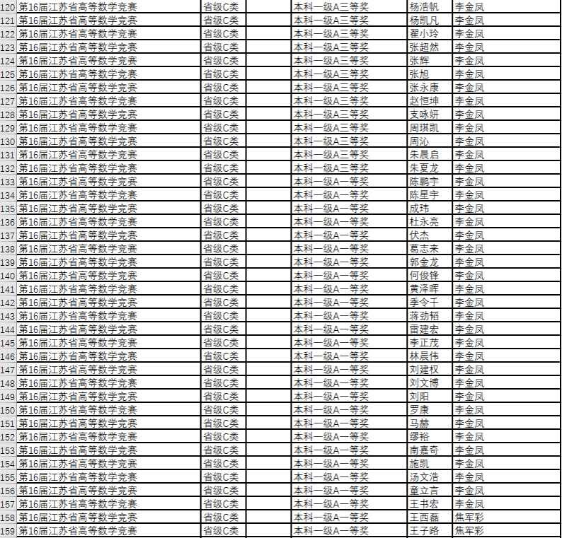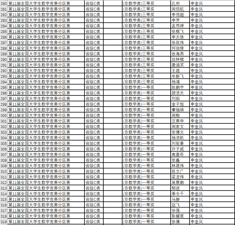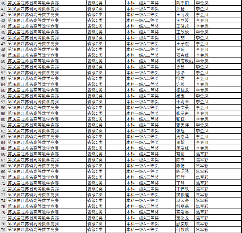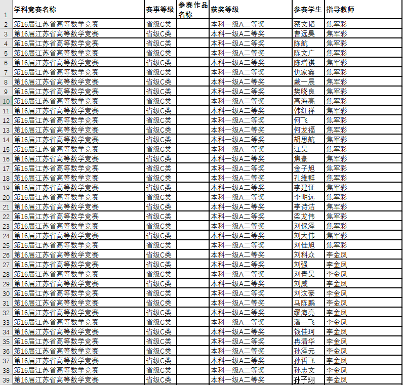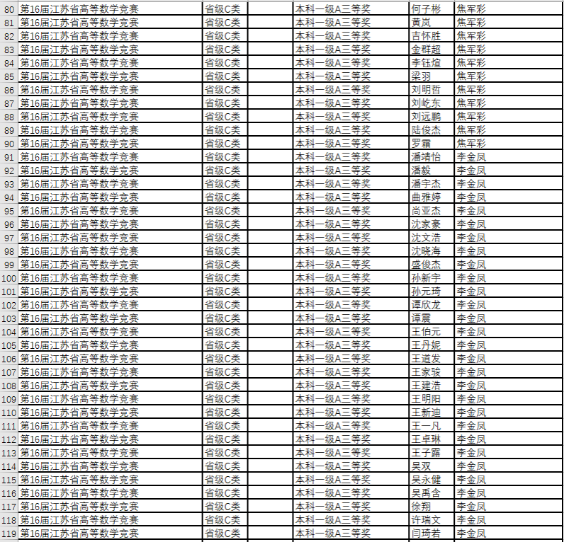 数学竞赛获奖名单--2019年