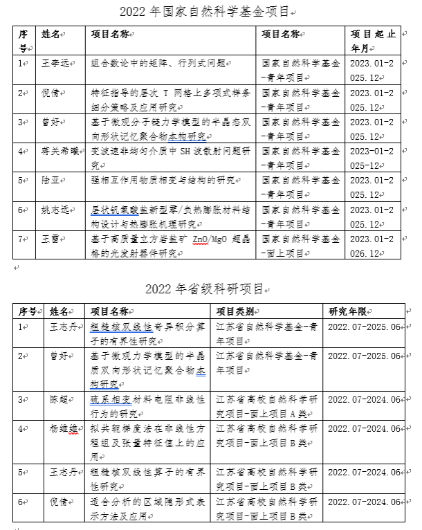 2022年数理学院承担的各类科研项目